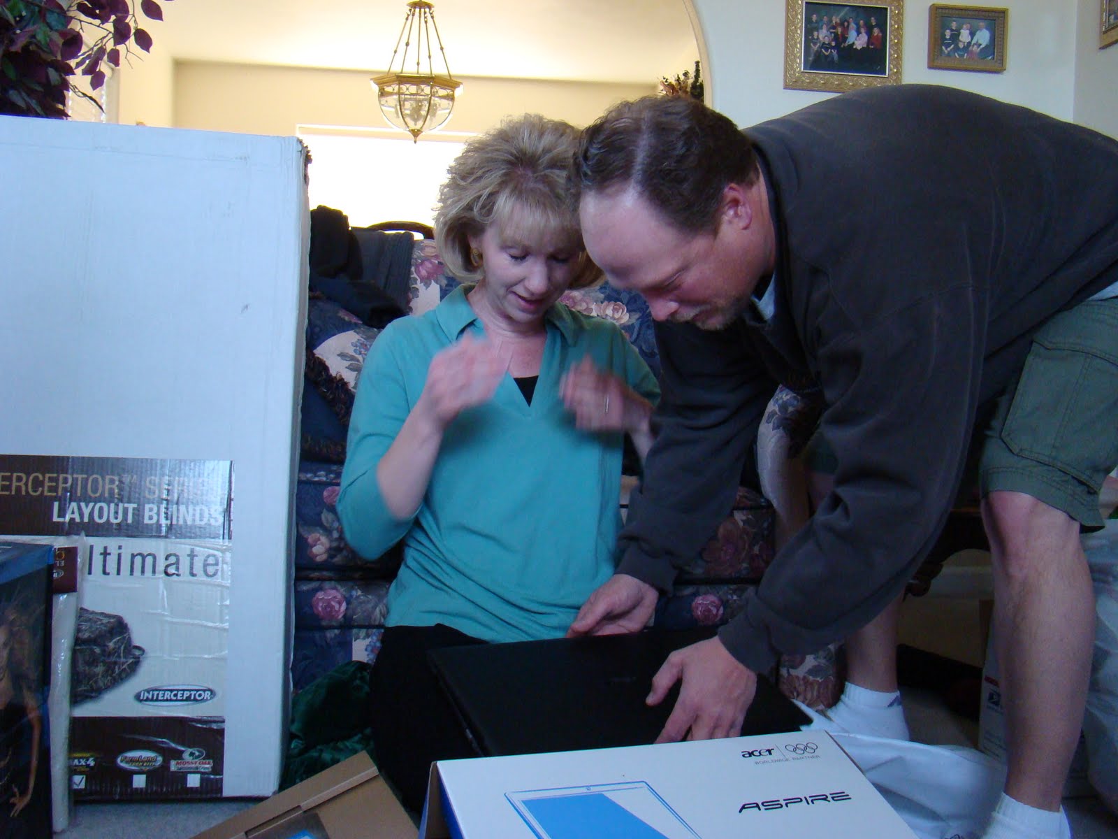 I know my husband loves me, but this Christmas I learned just how much. He went way over board this year on me, yes, he spoiled me! Weeks before Christmas he asked me what I would like. I gave him my little list; new dishes, a tripod for my camera, an ipod so I could go running to my music and not have to borrow one from the girls. And then last and the most expensive was a laptop computer. I love to work on my pictures, I love to blog, I love keeping my journal on the computer. All of these things have fallen behind because the computer is upstairs in the spare bedroom. I don't like being up there when the family is home because I love to be with them, if I go up there during the day my mommy chores fall behind. So there it is, my list for him to pick from. I honestly didn't know what he would do. Christmas morning we always get hair combed and teeth brushed, Ward and I go downstairs first so we can see the girls as they enter the room. I LOVE that moment!! This year Ward made me stay upstairs with the girls. When we came downstairs I saw the greatest tripod in my life!! It is so light weight, it is easy to use and it is mine!! I was more then happy with my gift. I really felt he had listened to me and understood my love for photography and was supporting my hobby. I set it up and took lots of pictures of the girls while they opened their gifts. It was fun to use and play around with it and my camera. Well, when we were finished with all the opening there was paper and boxes everywhere. I started gathering up all the garbage. Raychel took my camera and started to take pictures of me. I laughed and said really you are taking my picture while I am cleaning up the garbage? She just laughed. Then Ward came into the room and set a box in front of me. I was really confused. What was this??? He was so excited, saying open it!!! The girls were all giggling. I started to open the box and then realized it was a LAPTOP for ME! I was more then shocked!! I looked at him and the smile and the way he was looking at me I started to cry. I am so loved, I am so well taken care of, I have a very supportive loving man who got me exactly what I wanted and needed. I couldn't believe it! Raychel did a great job capturing all of my faces as I realized what I was receiving. I was completely speechless!!!